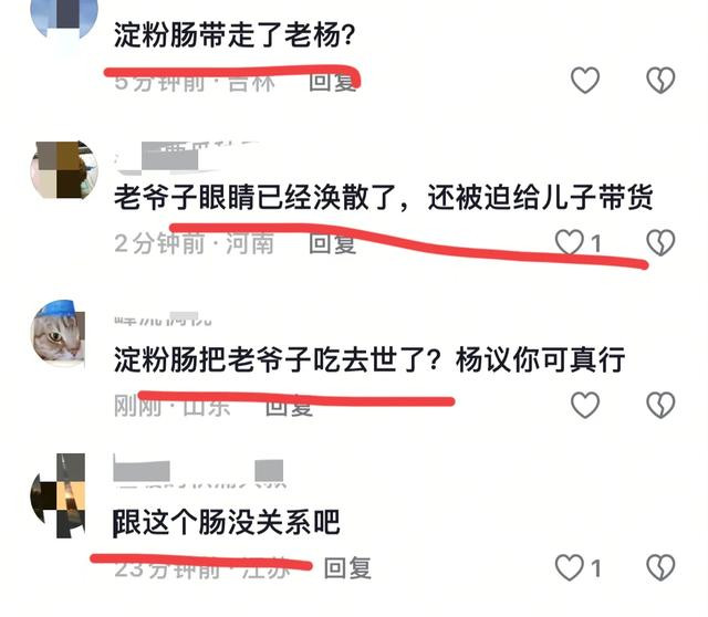 也有眼尖的网友表示,上午穿得是白色上衣和浅色裤子,下午宣传淀粉肠穿得是深色衣服,宣传淀粉肠的视频应该是库存,只是不该在老爷子弥留之际发出来,这样会被认为到死都在消费老爷子。